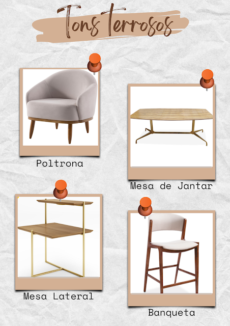 - Investir em móveis de madeira ou que possuam os pés ou molduras de madeira é outra dica bem legal pra quem quer apostar nos tons terrosos na decoração.